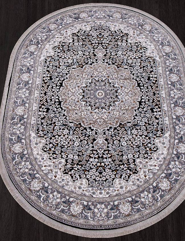 Коротко: «Ковер CASABLANKA 9734A BLACK / BLACK Овал» (CASABLANKA, Ercaplan) — ковер для дома, гостиной. материал: полиэстер, стиль: в классическом стиле, цвет: черный, серый, ворс: 7 мм, плотность: 1500000 точек/м², основа: хлопок, ориентирован на классическую подачу, страна производства: Турция.
