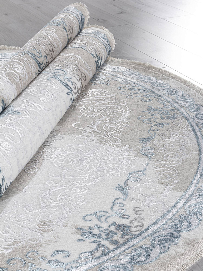 Коротко: «Ковер EFSAN-A L278A CREAM SHRINK / BLUE FDY Овал» (EFSAN, ARDA, Турция) — ковер для дома, гостиной. материал: полиэстер, стиль: в классическом стиле, цвет: кремовый, бежевый, синий, ворс: 8 мм, плотность: 320000 точек/м², основа: хлопок, ориентирован на классическую подачу, страна производства: Турция.