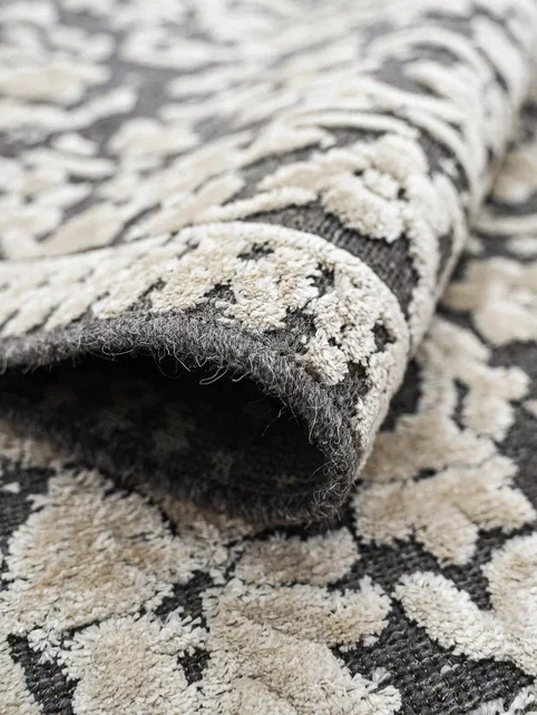 Этот ковер хорошо работает в современном интерьере, где важны чистая визуальная логика, фактура и умеренный декоративный акцент без перегруженности деталями.
