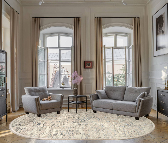 Ищете красивый ковер в любую комнату? Рекомендуем обратить внимание на MIKONOS F584AH CREAM / D.BLUE Овал из коллекции MIKONOS! Его гармоничный дизайн станет украшением интерьера и привнесет в него уют.