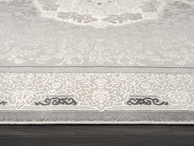 Коротко: «Ковер NENSI GL038A GREY / GREY» (NENSI, KARMEN HALI, Турция) — ковер для дома, гостиной. материал: полипропилен + Полиэстер, стиль: в классическом стиле, цвет: серый, ворс: 10 мм, плотность: 604000 точек/м², основа: хлопок, ориентирован на классическую подачу, страна производства: Турция.