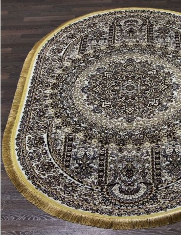 Коротко: «Ковер NIGIN MANOLYA IRANI 8001 CREAM Овал» (NIGIN MANOLYA IRANI, FASHN, Турция) — ковер для дома, гостиной. материал: полиэстер, стиль: в классическом стиле, цвет: кремовый, коричневый, ворс: 7 мм, плотность: 902400 точек/м², основа: джутовая, ориентирован на классическую подачу, страна производства: Турция.