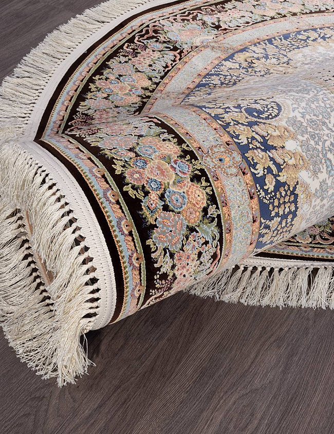 Коротко: «Ковер SHIRAZ 5281 000 Круг» (SHIRAZ, IRANOS, Иран) — ковер для дома, гостиной. материал: акрил, стиль: в классическом стиле, цвет: кремовый, синий, коричневый, тип ворса: Средний – 6-12 мм, плотность: 3600000 точек/м², основа: хлопок, ориентирован на классическую подачу, страна производства: Иран.