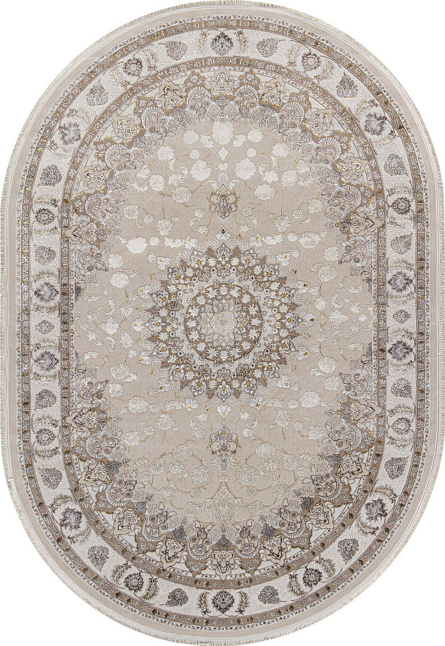 Коротко: «Ковер ZARINA A050B L. BEIGE / CREAM Овал» (ZARINA, ARDA, Турция) — ковер для дома, гостиной. материал: полиэстер, стиль: в классическом стиле, цвет: кремовый, бежевый, ворс: 8 мм, плотность: 720000 точек/м², основа: хлопок, ориентирован на классическую подачу, страна производства: Турция.