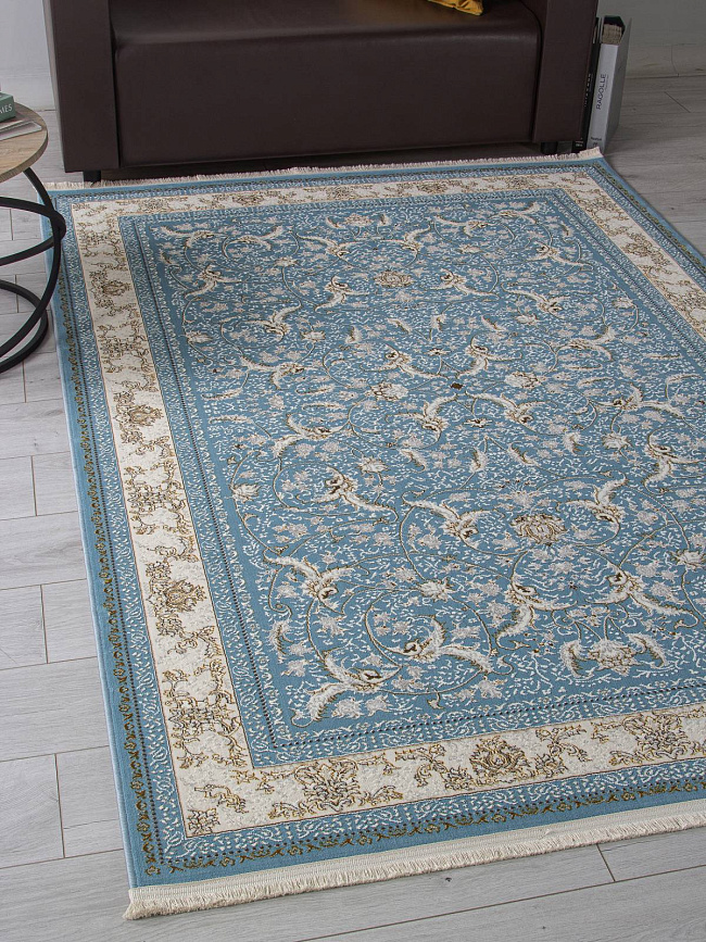 Коротко: «Ковер ZARINA M101B BLUE SHIRINK / BLUE SHIRINK» (ZARINA, ARDA, Турция) — ковер для дома, гостиной. материал: полиэстер, стиль: в классическом стиле, цвет: синий, бежевый, ворс: 8 мм, плотность: 720000 точек/м², основа: джутовая, ориентирован на классическую подачу, страна производства: Турция.